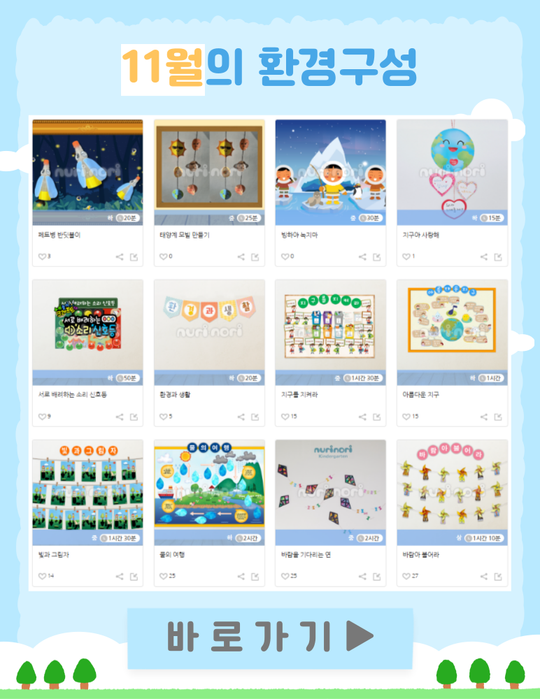 유아들과 함께하기 좋은 만들기, 환경구성을 추천해 드립니다.