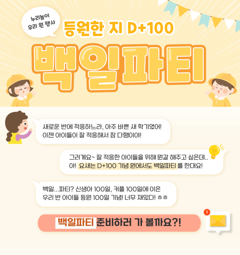 요즘 원에서는 등원 100일을 기념하는 행사를 많이 진행하고 있습니다.
